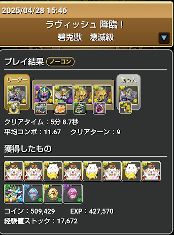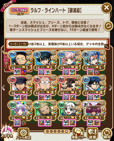降臨リーダーという事でお察しいただけるかと思いますが苦労してます。完全クリア出来るのは5回に1回程度。とりあえず2キャラとも満福までは持ってこれたのでこのあとどーすっかなー、で御座います。