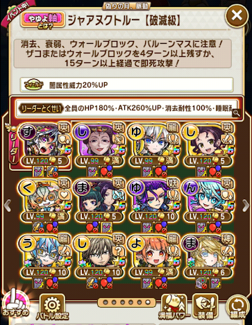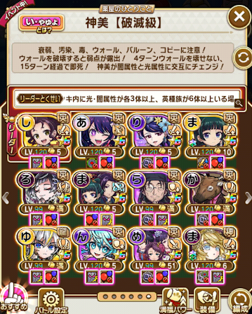 降臨リーダーという事でお察しいただけるかと思いますが苦労してます。完全クリア出来るのは5回に1回程度。とりあえず2キャラとも満福までは持ってこれたのでこのあとどーすっかなー、で御座います。