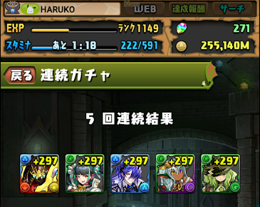 いや周回自体はもう終わったんですけどね、今回もクリア出来ていません。アイちゃんとかのワンパンできるリーダーを持ってる篤志家の方に寄生して周回しました。だってギミック片方しか対策出来るリーダーしか持ってないし、アイちゃんはいるけどワンパン無理だし・・・引きが悪いのがイカんのではあるが。