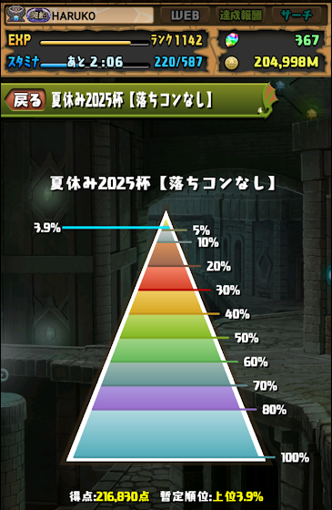 オチコン無し固定杯で運要素は配置のみ。普通に考えて上位はガチ勢が占めると思われ、半ばあきらめてたんですけど、初日で22万がラインかな、と思われていたのに思ったより伸びず、それなら配置に恵まれるまでやってみようと思ったら恵まれました。