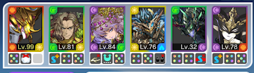 なおガネーシャの代わりに追い出される率が一番高いのがアレキサンダー。ホルスは中ランクキャラですが、どこにでも入る高性能だし代替がいないので、ダンジョン経験値のみで早くもレベル99。