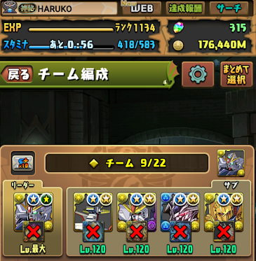 だが大変面倒くさい。ダンジョンはこれでも簡単になったのだが、同キャラ・アシスト禁止が過分に足を引っ張ってるな。スタミナ99で+倍落ちるようにいてくれんかな。難易度据え置きで。