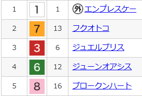 オニノウタゲ 6着 ミヤザキムスメ 13着 ヒカ 15着 ドンパッショーネ 14着 ミズノミヤコ 2着 2840ショウヘイ 1着 500 180 ボンボンベイビー 9着 ミダレセツゲツカ 12着 ハピ 6着 フクオトコ 2着 240