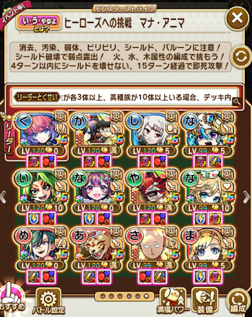 ヒーローズへの挑戦 マナ・アニマはこのメンバーで周回している