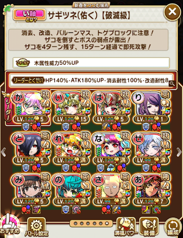 今のコトダマン破滅級はグランドが複数体いて安定クリアバランスになっとるのだよな。最適リーダーがいなければ勝負すら挑めない状況でもあり、改善を促したいところだが、噂に聞くところではモンストもそういう感じになっとるらしいのがなぁ。mixiの良くない所なのかもしれない。