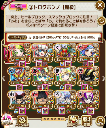 今回は直前の新ガチャ10連1回で新キャラ3体が手に入るという神引きしたので比較的楽でしたが、そうじゃなくても炎上さえ防げればいいのでそんなに難しくなかったかな。ともかくもう周回終了しました。毎回こうだといいのに。