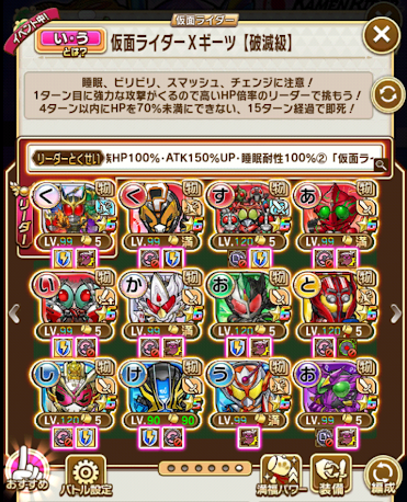 今回は最レア1体に★5が2体と大分偏った引きになってしまったので、サブ不足が懸念されましたがそんなことは無かったぜ、ということで。なおリーダーも代替結構あります。