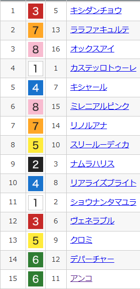 1・ ポンPと番人 (まさかの不発) レガレイラ 4着3・ 勇者 (以下は当然もっと酷い) ジャスティンパレス 7着4・ 暗子 (名前はかっこいいんだけど) シュヴァリエローズ 10着5・ 暗子 (以下二桁) グライスフラワー 10着6・ 王様 (真の校庭じゃなかったのか?) シンエンペラー 14着7・ 魔女っことオイラ (付き合わせたみたいで悪いねぇ) アラタ 15着