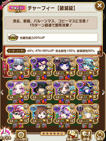 章の始まりからWギミック体制が必要とかデレデレキャンペーンは終了した模様。サブもガチャ産多目だし、そこそこ厳しいのよな。運営も配り倒した期間限定言玉も回収しなきゃならんし、気持ちはまぁわからんでもない。